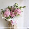 Không rực rỡ, không phô trương, Satellite là bó hoa cẩm tú cầu được tạo nên từ những chuyển động rất chậm – nơi từng cánh hoa, từng lớp lá và từng nếp giấy gói cùng kể một câu chuyện êm ái. Nhìn từ xa, bó hoa như một cụm mây hồng trôi lặng lẽ; lại gần hơn, bạn sẽ thấy sự tinh tế nằm trong từng chi tiết nhỏ.