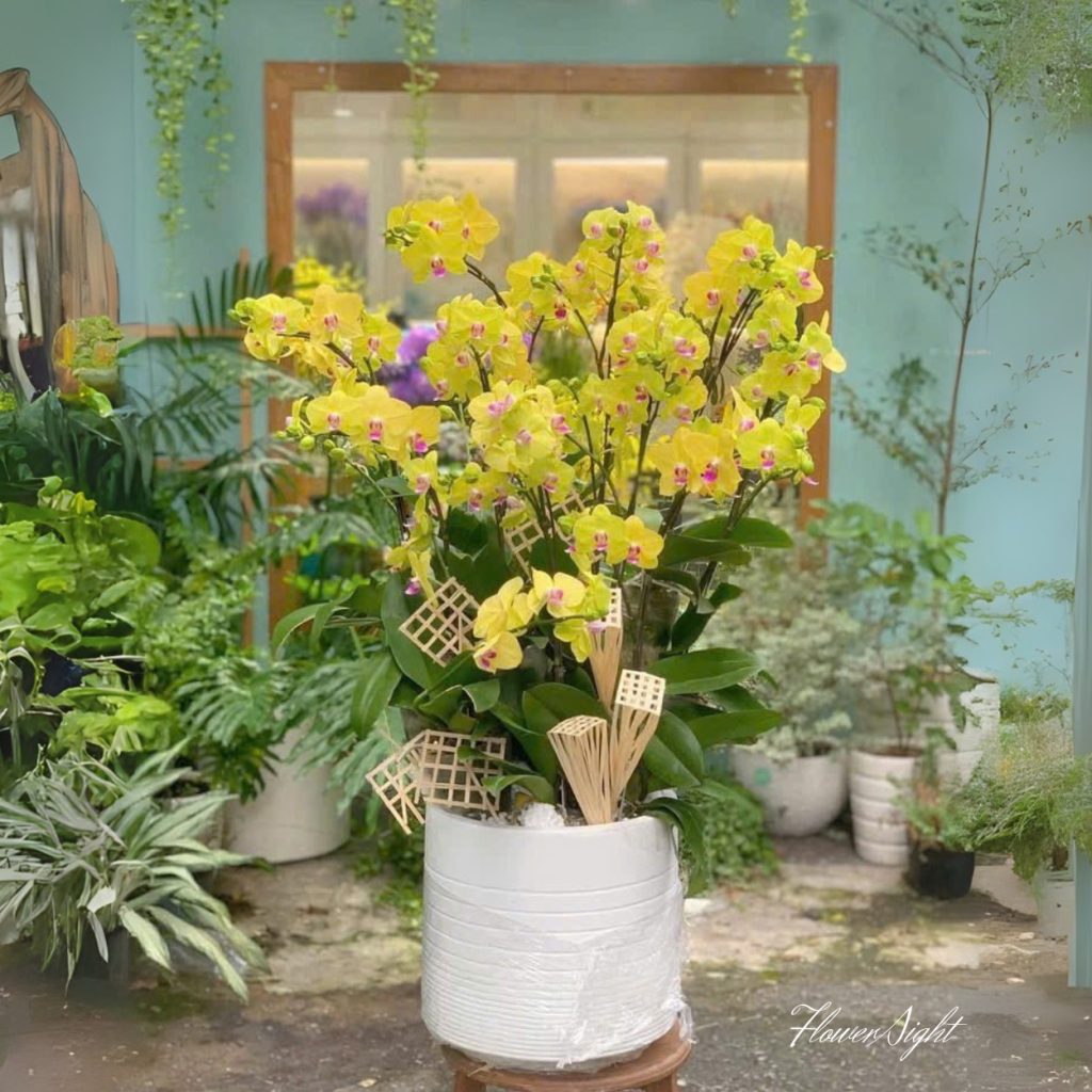 Chậu lan vàng cũng là lựa chọn hoàn hảo để tặng nhân dịp kỉ niệm thành lập công ty hoặc sinh nhật sếp. Chậu hoa không chỉ làm đẹp văn phòng mà còn mang thông điệp chúc công việc thuận lợi, thăng tiến bền vững và thành công rực rỡ. Thiết kế hài hòa và màu sắc tươi sáng giúp không gian trở nên trang nhã, đồng thời truyền tải sự trân trọng và chuyên nghiệp.