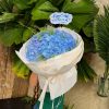Toàn bộ bó hoa được xây dựng xoay quanh cụm cẩm tú cầu xanh – một khối tròn đầy, chắc tay và có độ phủ tự nhiên. Không có sự chen chúc của nhiều loại hoa, Stronger chọn cách làm nổi bật một chủ thể duy nhất, từ đó tạo nên điểm nhấn rõ ràng và dễ ghi nhớ.