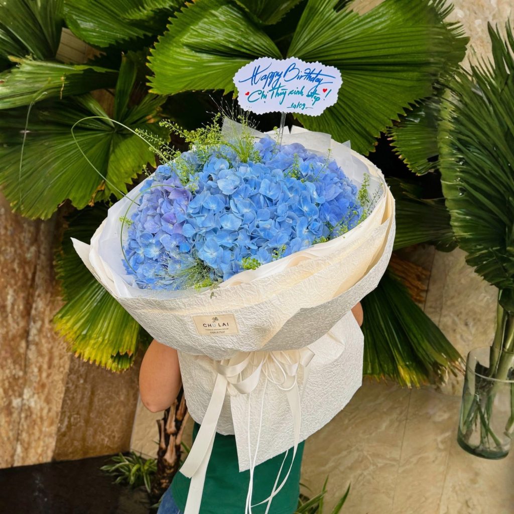 Ngay từ ánh nhìn đầu tiên, sắc xanh của cẩm tú cầu mang đến cảm giác mát lành và điềm tĩnh. Không rực rỡ theo kiểu gây chú ý, cũng không quá nhẹ để bị lãng quên – tông xanh này nằm ở điểm cân bằng hoàn hảo, giống như hình ảnh của một người đàn ông trưởng thành: trầm ổn, chắc chắn nhưng vẫn có chiều sâu cảm xúc.