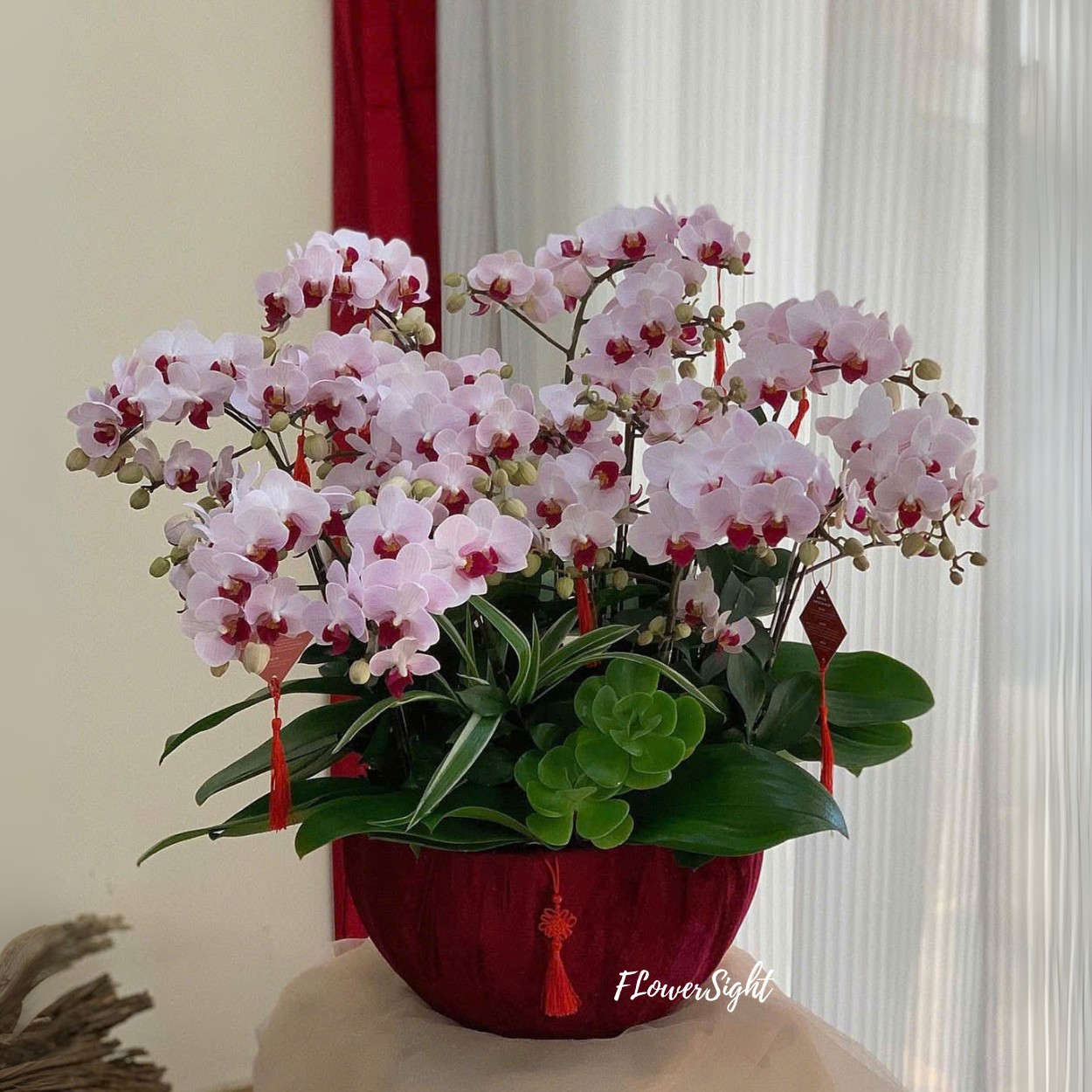 Sweet Vibe là chậu hoa kết hợp hài hòa giữa lan, sen đá, vải và khánh treo, mang vẻ đẹp thanh thoát, tinh tế. Chậu hoa phù hợp tặng sinh nhật mẹ, 8/3, 20/10, dịp khai trương hoặc tặng sếp, gửi trọn thông điệp yêu thương, may mắn và tràn đầy năng lượng tích cực.