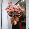 Điểm nhấn chính của bó hoa là những đóa hoa hồng tông hồng đất – sắc màu mang chiều sâu, không quá ngọt, cũng không lạnh. Cánh hoa mở vừa phải, xếp lớp tự nhiên, tạo cảm giác tròn đầy nhưng vẫn có khoảng thở. Xen kẽ giữa các bông hoa là lá bạc với sắc xanh xám dịu, giúp cân bằng thị giác và làm nổi bật gam hồng trung tâm.Lá bạc không chỉ đóng vai trò phụ họa mà còn tạo nên nhịp điệu cho bó hoa, khiến tổng thể trở nên mềm mại, có chuyển động, không bị cứng hay đơn điệu. Cách cắm hoa thiên về dáng tròn tự nhiên, các lớp hoa được xếp có chủ ý nhưng không lộ kỹ thuật, mang lại cảm giác rất “đời” và gần gũi.