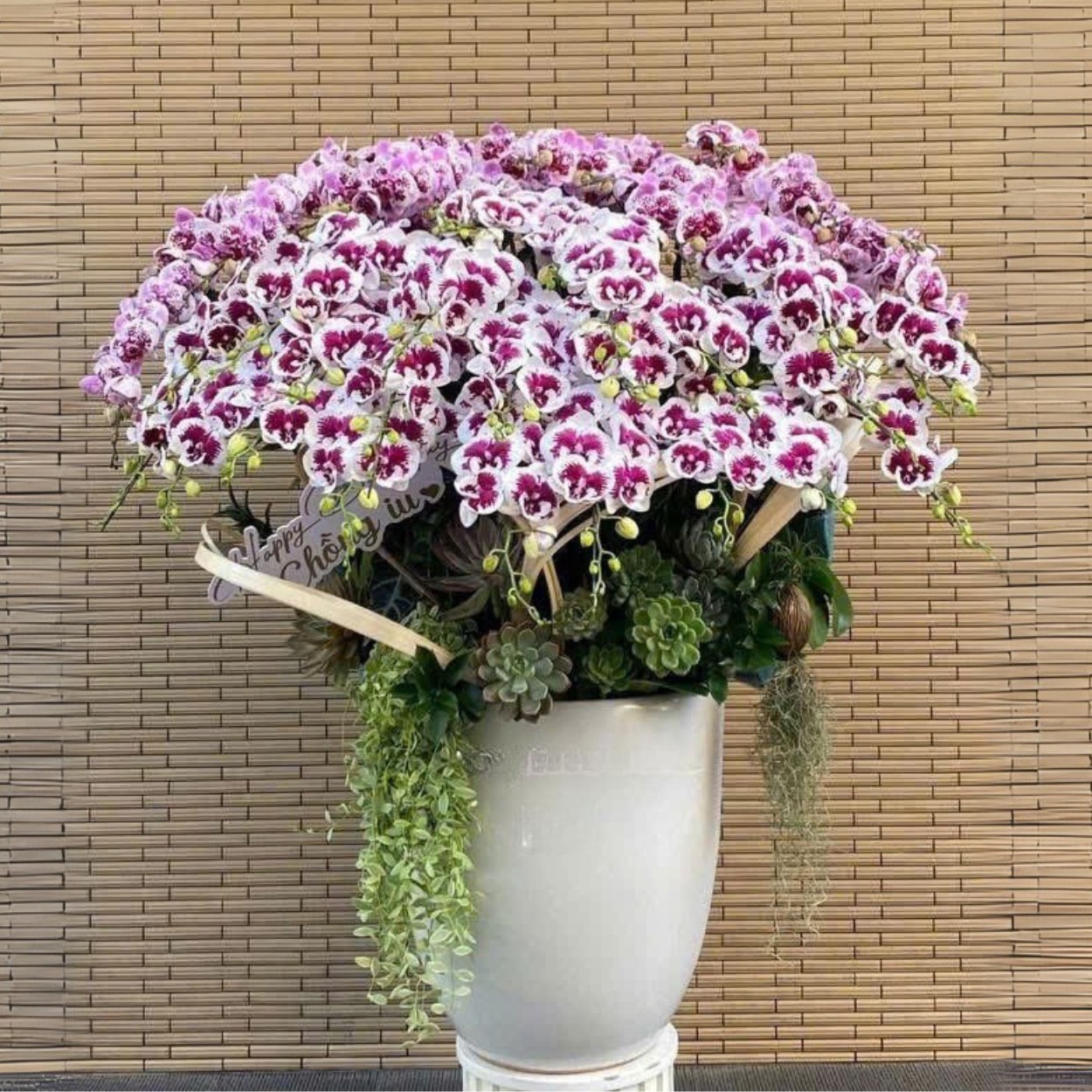 Chậu lan hồ điệp này là lựa chọn hoàn hảo để gửi lời chúc may mắn và thành công. Vẻ đẹp trang nhã của bó hoa giúp không gian thêm sinh động và nổi bật. Đây cũng là cách tinh tế để thể hiện sự quan tâm và chúc phúc cho chủ cửa hàng hoặc văn phòng mới.