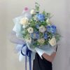 Sắc xanh pastel hòa cùng trắng tinh khôi tạo nên một tổng thể dịu mắt, nhẹ nhàng như một lời chúc không cần nói thành lời. Đây không phải là bó hoa phô trương, mà là kiểu đẹp khiến người ta phải dừng lại vài giây để cảm nhận.