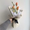 Tôi muốn bạn chạm vào cảm giác bồi hồi của những ngày đầu rung động. “Tình đầu” là một bó hoa mini nhưng giàu cảm xúc, nơi từng cánh tulip cam san hô vươn cao e ấp, nhường nền trắng dịu của cúc tana khẽ đung đưa như lời thì thầm. Kết cấu gọn gàng, màu sắc hài hòa và cách xử lý chất liệu mượt mà tạo nên một món quà đủ tinh tế để chạm trái tim ngay từ cái nhìn đầu tiên.