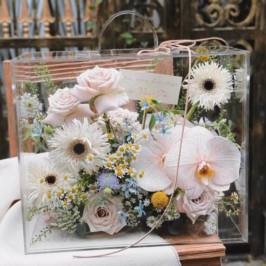Hộp hoa này là một lựa chọn không thể thiếu trong những dịp trọng đại của bạn, mang đến không chỉ vẻ đẹp mà còn cả sự tinh tế và ý nghĩa sâu sắc trong từng cánh hoa.