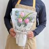 Lớp giấy gói là sự kết hợp giữa giấy trắng sương và lớp nhựa trong in chữ nghệ thuật, mục đích giữ form mà không che mất vẻ đẹp của hoa. Phần nơ ruy băng hai tầng thắt vừa tay, gọn gàng, giúp bó đứng dáng tốt khi cầm hoặc đặt lên bàn.