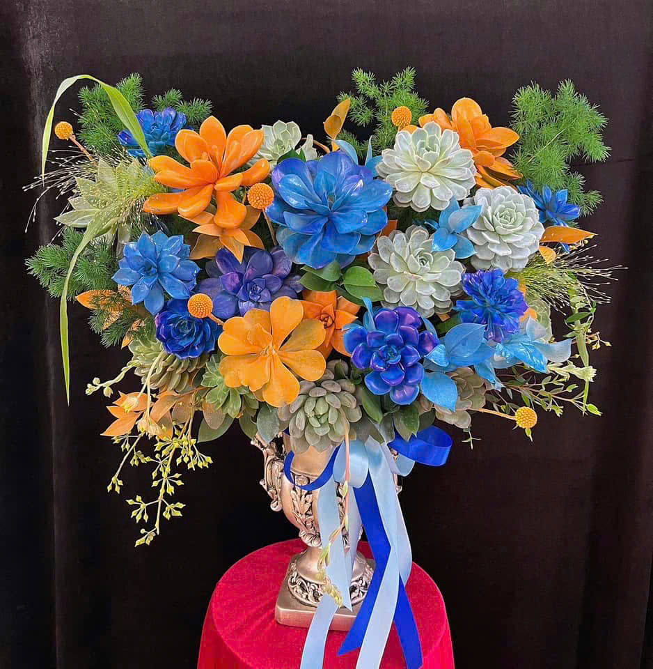 Có những cảm xúc không đi theo đường thẳng: vừa giận một chút vì người ta vô tâm, vừa thương một chút vì chính mình vẫn quan tâm. “Vừa hận vừa yêu” ra đời từ tinh thần đó—một giỏ hoa sen đá không cố “ngoan hiền”, mà chọn cách đẹp theo kiểu thẳng thắn, rực rỡ, và có chiều sâu.