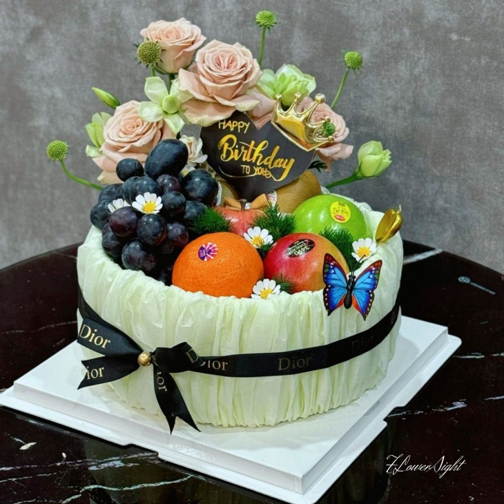 Mở nắp hộp là mùi hương trái cây dịu nhẹ, kế đến là cụm hoa tươi giữ form lâu, dễ chăm. Trái cây được tuyển chọn theo mùa, kích thước đồng đều, rửa sạch và sắp xếp thông thoáng để lưu thông khí; chỉ cần bảo quản nơi khô mát, tránh nắng gắt. Phần hoa dùng cắm bình mini sau khi thưởng thức trái cây, kéo dài niềm vui thêm vài ngày. Giỏ mây tái sử dụng làm giỏ đựng đồ bếp hoặc trang trí góc bàn – một món quà “đẹp từ lúc nhận đến khi dùng”.