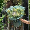 Bó hoa mang sắc xanh dịu mát làm chủ đạo, không rực rỡ phô trương, mà cuốn hút theo cách rất riêng – như một tình yêu trưởng thành, sâu lắng và khó dứt ra.